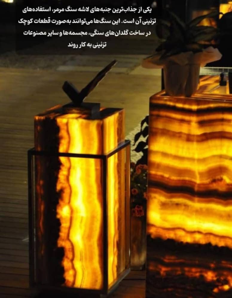 - دکوراسیون داخلی – استفاده در کفپوش، دیوارپوش، میز و ستونهای لوکس